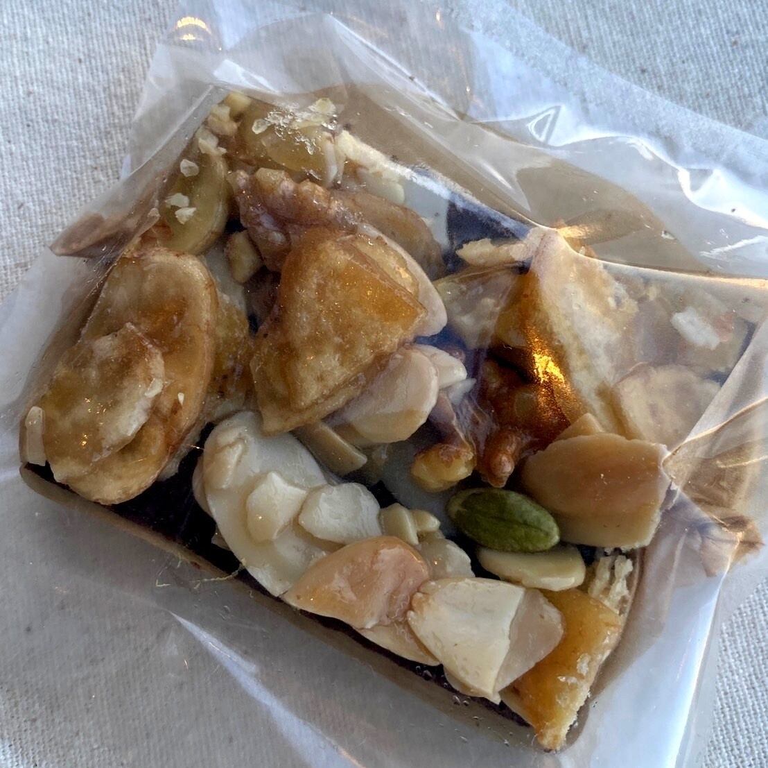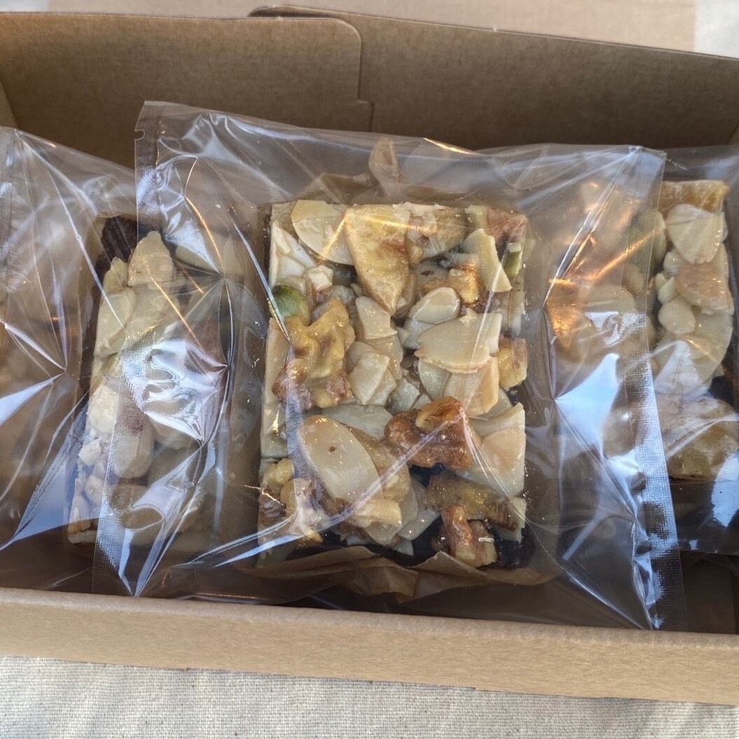 天然酵母のざくざく生地に、キャラメリゼしたナッツやバナナチップがぎっしり詰まった食べ応えある焼菓子です。